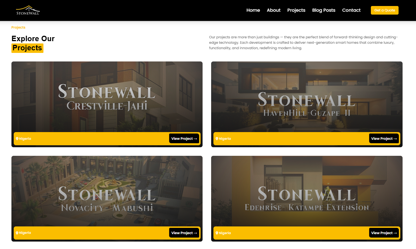 Stonewall were already one of Nigeria's leading realtors. The problem was their website said otherwise. High-value buyers — including diaspora clients searching from abroad — were landing on something that didn't match the firm's standing in the market.