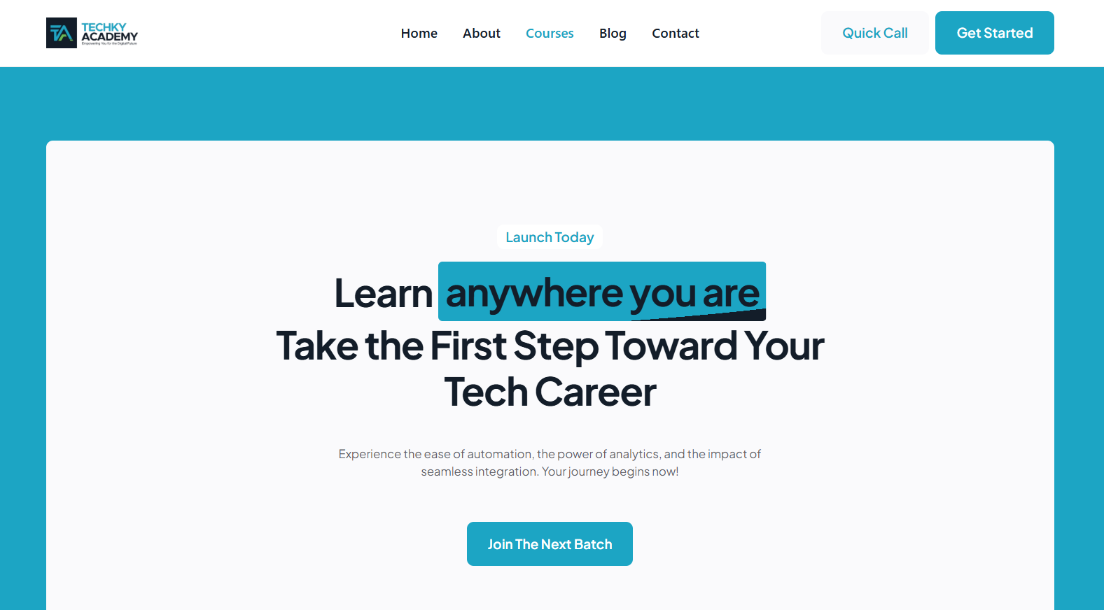 TechKy Academy was running a serious programme with no serious web presence. Everything lived on social media. They had no platform to direct prospective students to, no way to manage enrolment, and no digital credibility to match what they were building offline.